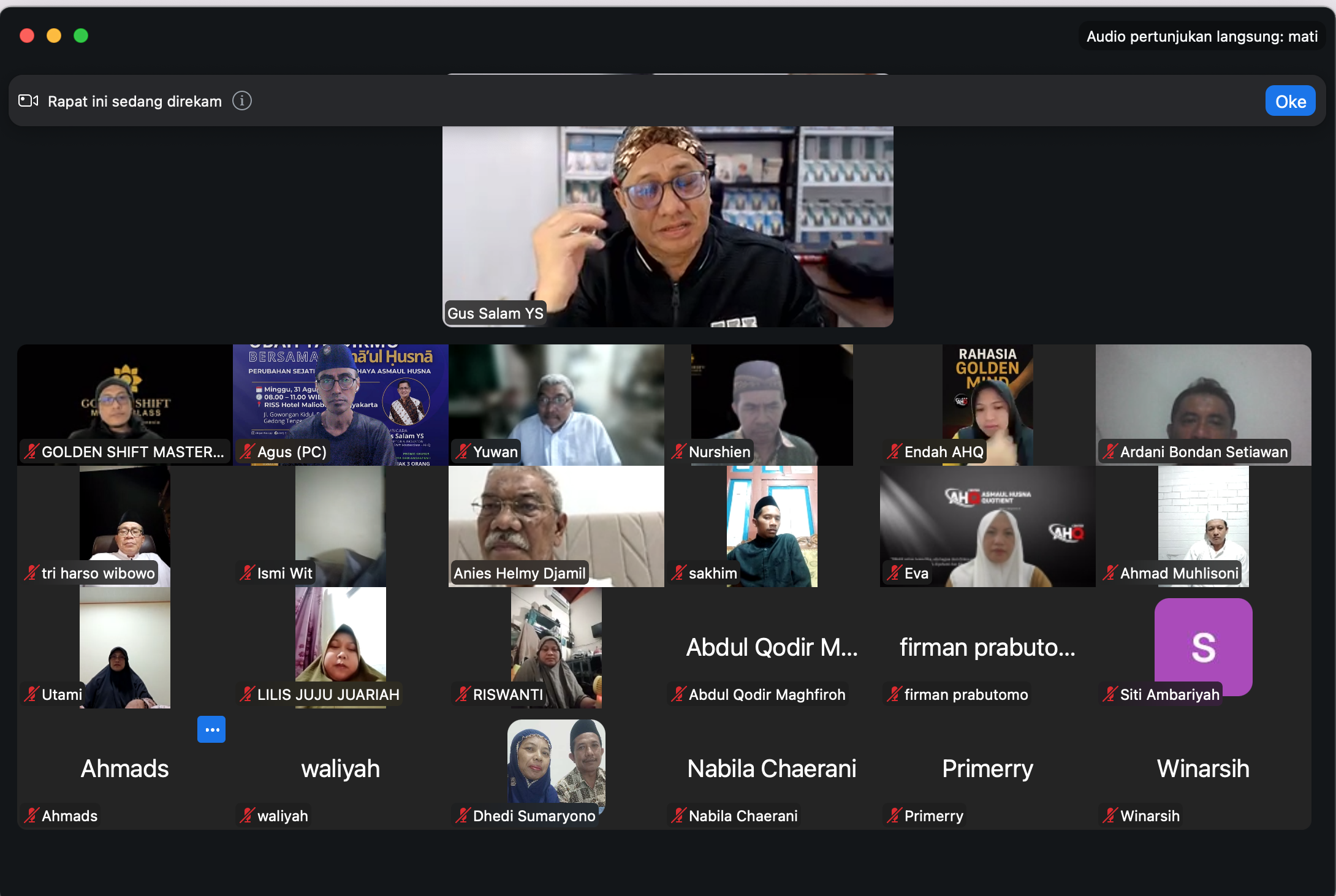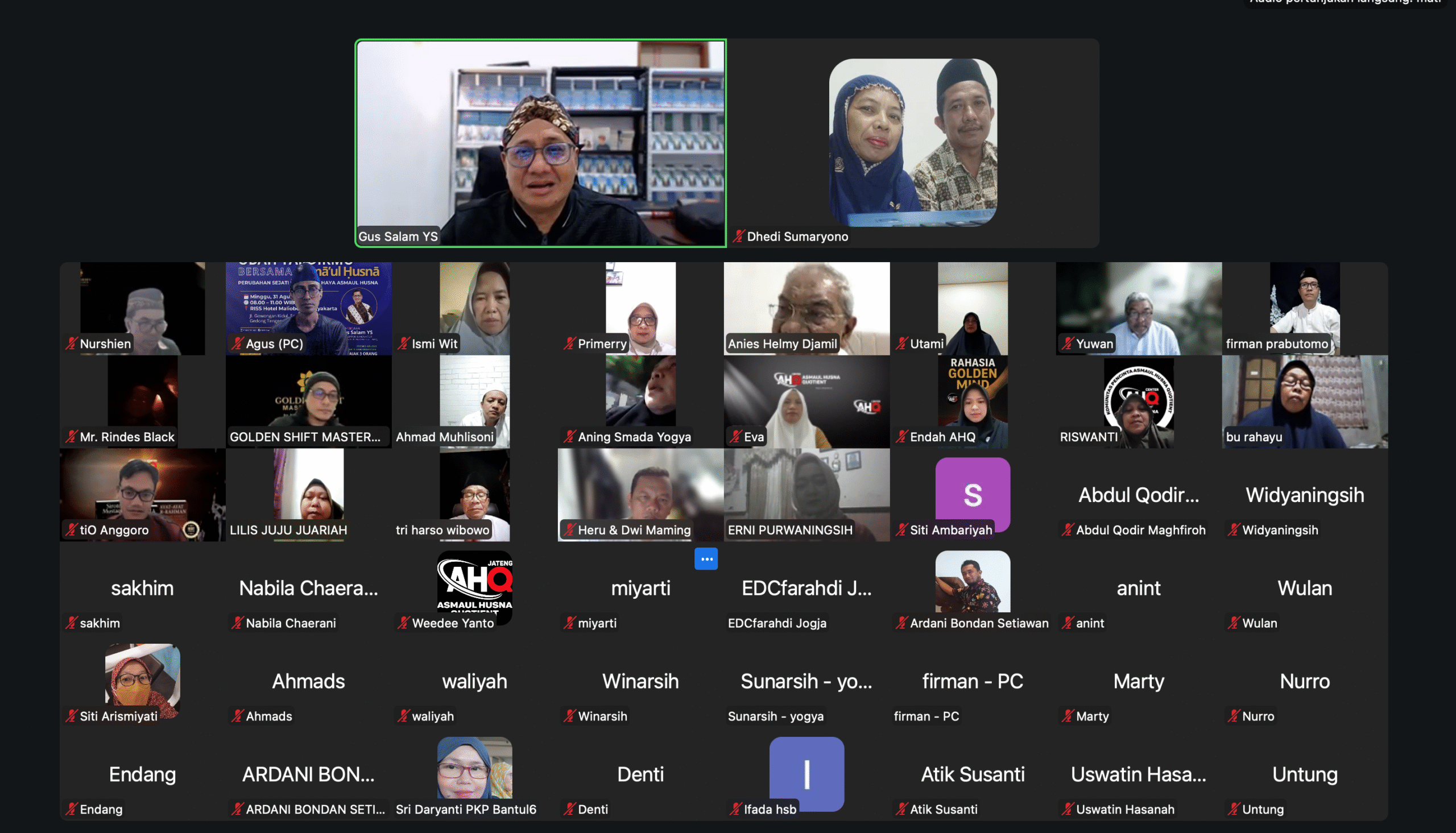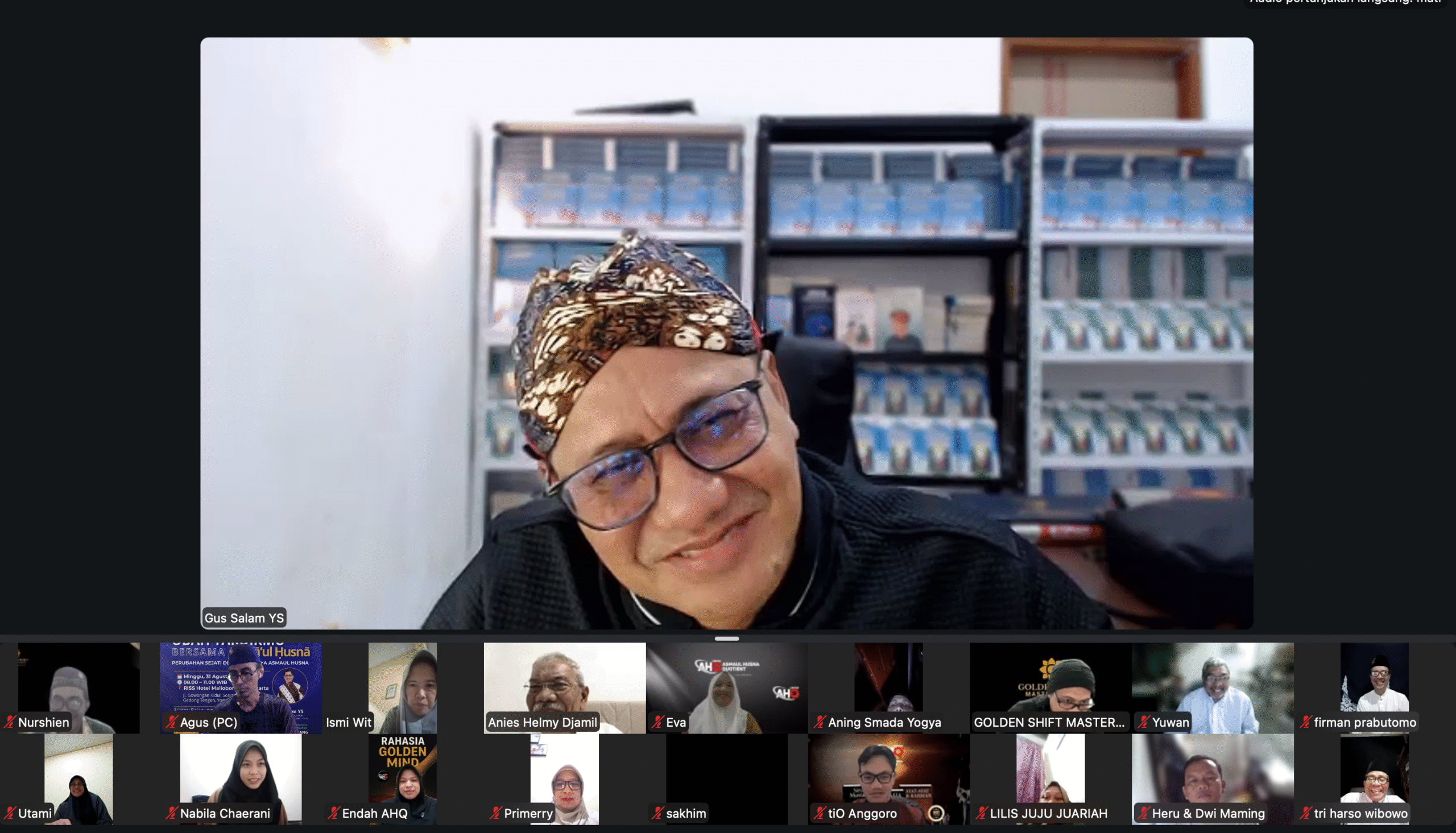 “Khusus Asmaul Husna ini saya teliti selama 10 tahun. Tahun 2015 lalu, saya sudah berpikir bagaimana Asmaul Husna ini bisa menjadi dasar yang mudah untuk diajarkan kepada umat. Saya coba cari metodenya, awalnya muncul dengan cara manual membuat kotak asma. Santri diminta konsentrasi, tangan meraba di atas 99 kotak asma sampai terasa ada getaran atau tarikan, untuk dipilihnya. Tahun lalu, ada ide untuk mendigitalkan Asmaul Husna ini, dan tahun ini muncullah AHQ, Asmaul Husna Quotient,” cerita Gus Salam YS, saat penutupan GSM Mind Shifting Batch 1 Level 1 yang digelar via zoom meeting, Jumat (05/9/2025).